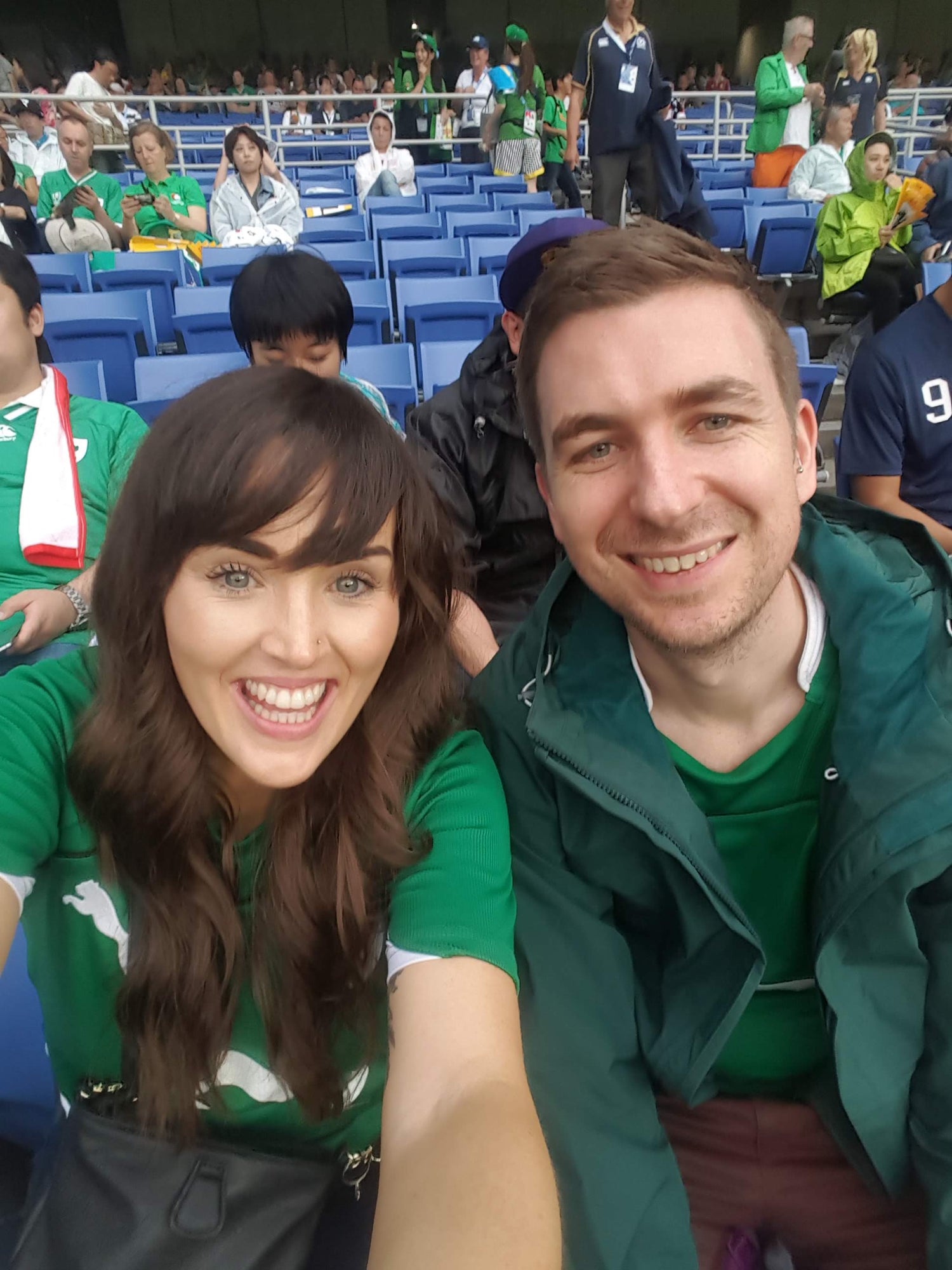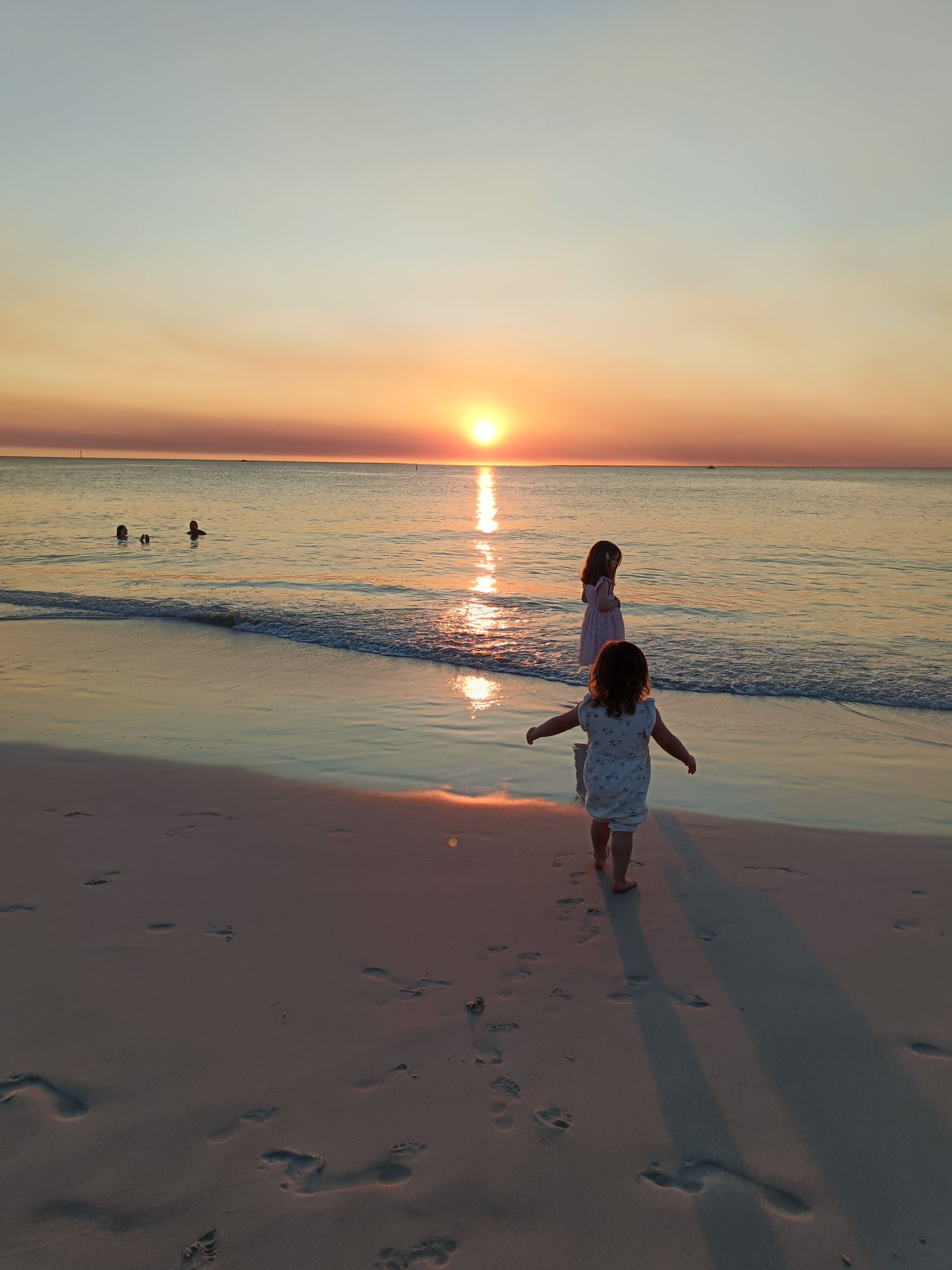 1st Pic: My kids on at Sunset in Perth. 2nd Pic: Myself and my husband, Mark at the Japan Rugby world cup 2019